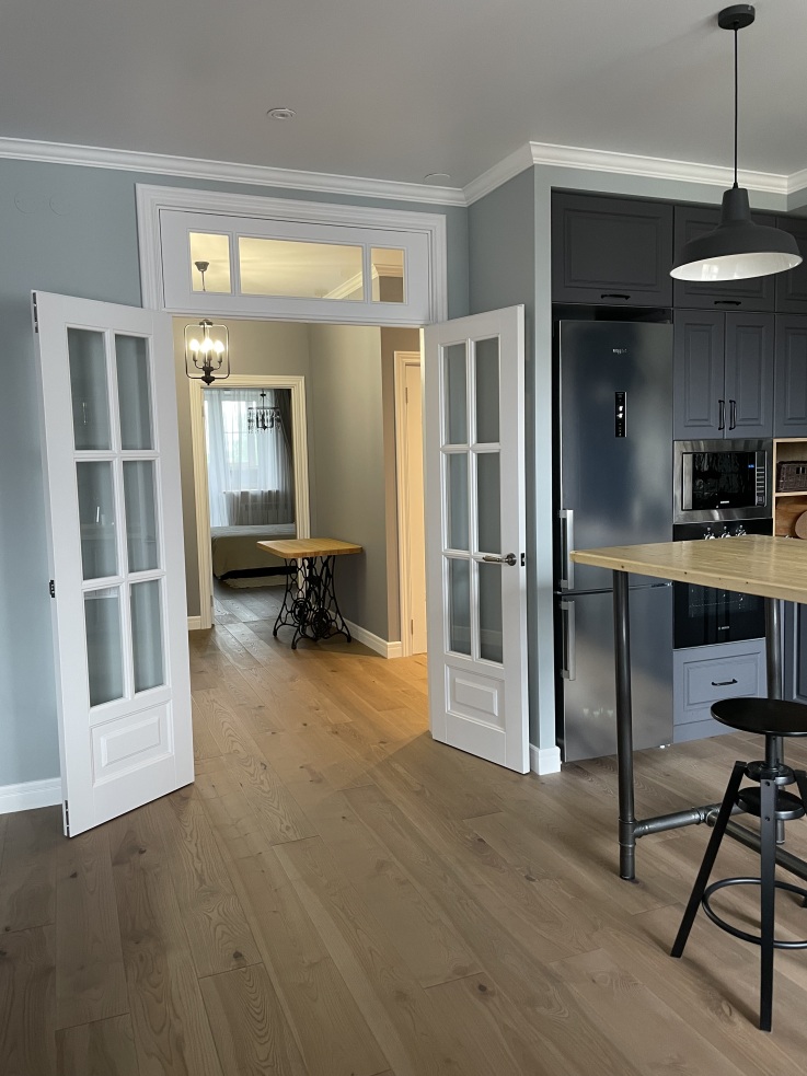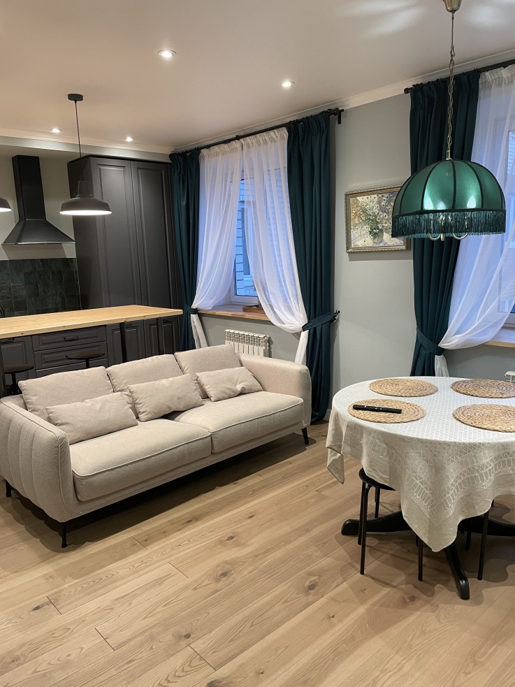Это новые трехкомнатные апартаменты с дизайнерским ремонтом в центре города, которые обеспечат комфорт в любое время года. В комнатах паркет из натурального дерева, в санузлах и в прихожей - испанский керамогранит с подогревом.